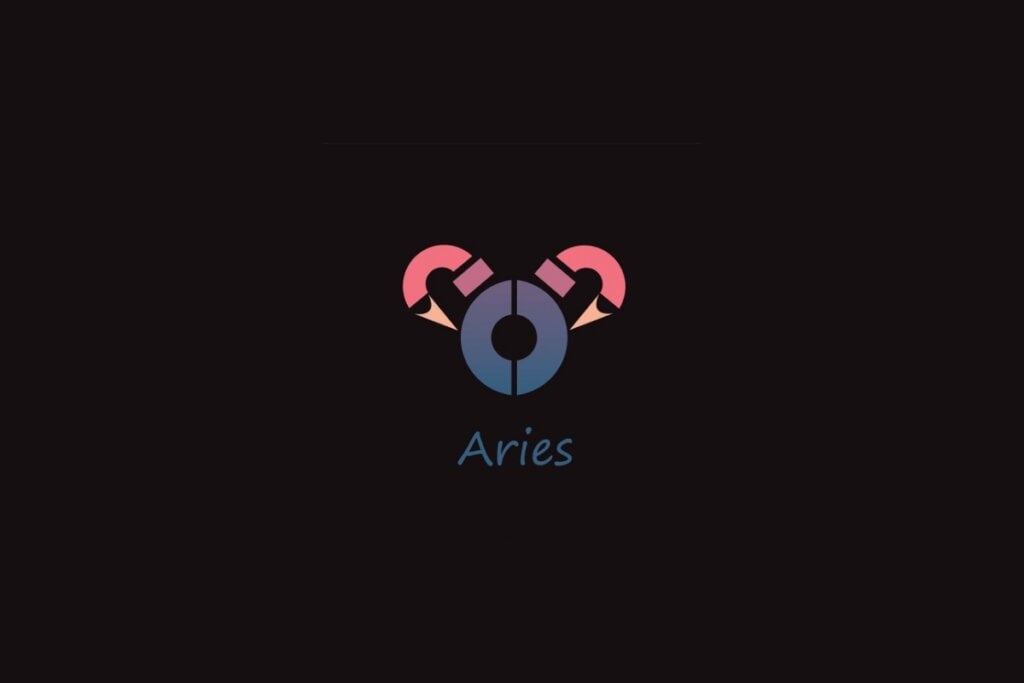 Ilustração do signo de áries em formato geométrico nas cores rosa, roxo e azul