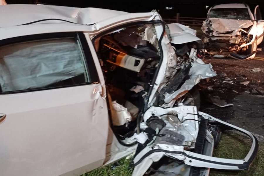 A colisão frontal foi entre um Toyota Corolla, com placas de Imbé e um GM Zafira, de Santa Vitória do Palmar, na altura do km 07, em frente a um posto de combustível.