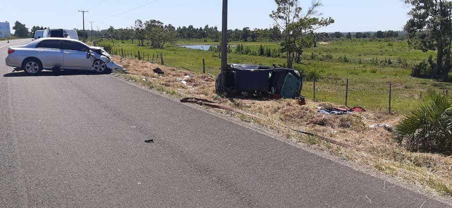 A colisão frontal envolveu um Toyota Corolla, com placas de Santo Antônio da Patrulha e um Citroën Picasso, de Cachoeirinha, na altura do km 02 da Estrada do Mar.