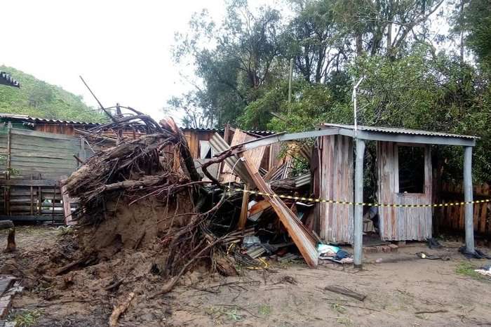 Porciúncula estava dentro de casa, no bairro Vila Maria dos Anjos, em Rio Grande, no litoral sul, quando uma árvore de grande porte caiu sobre a casa nesta quinta-feira (13).