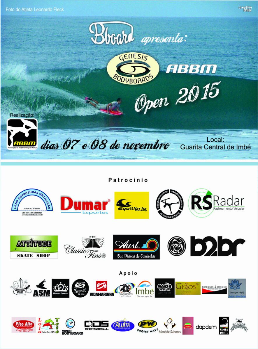 A Associação de Bodyboarding de Mariluz (ABBM) realizará nos dias 7 e 8 de novembro o Genesis ABBM Open 2015. O evento reunirá atletas gaúchos e catarinenses junto a Guarita Central em Imbé (altura da Avenida Santa Rosa).