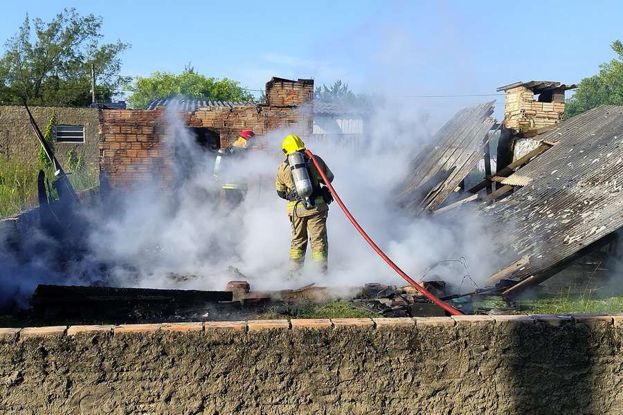 Um incêndio consumiu uma residência nesta terça-feira (28), no Balneário Quintão.