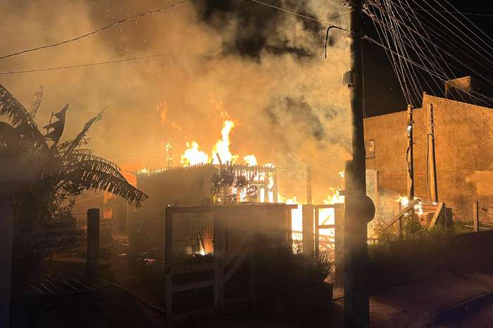 Um incêndio destruiu completamente uma residência de madeira de dois pavimentos na Rua 11, no bairro Araçá, em Capão da Canoa, Litoral Norte do Rio Grande do Sul, na noite deste sábado (1º).