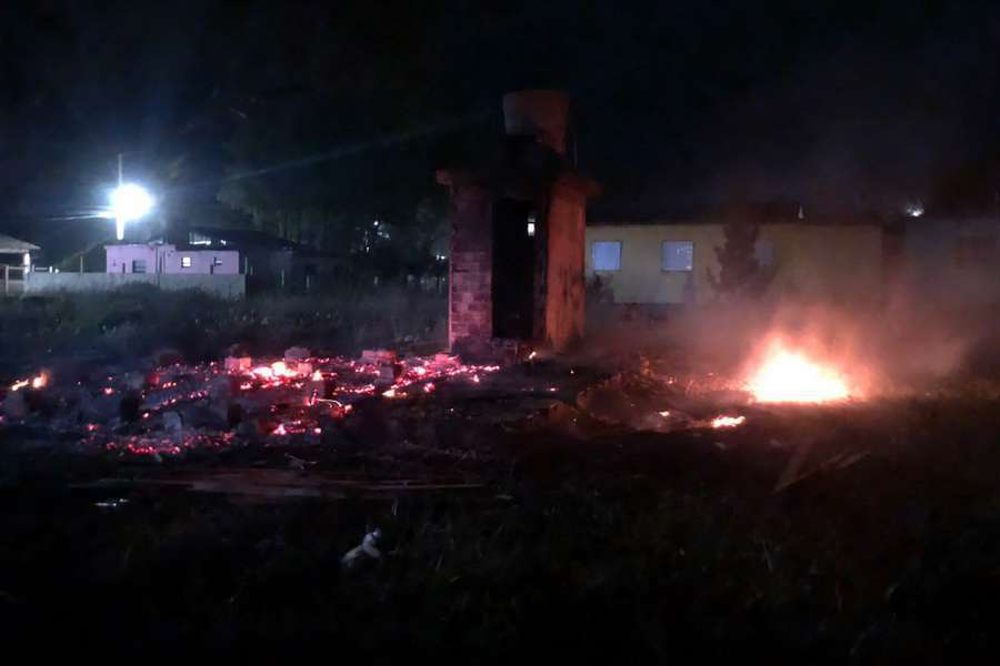 Um incêndio destruiu uma casa mista por volta das 04h05min desta quinta-feira (20), no Balneário Quintão, em Palmares do Sul.