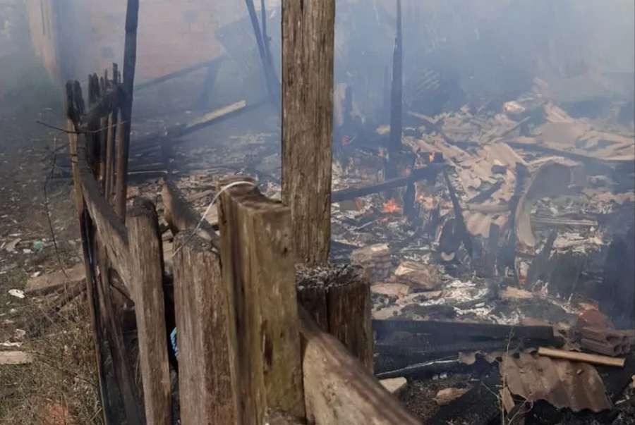 Uma casa de madeira foi destruída pelo fogo no início da tarde deste sábado (25), em Tramandaí.