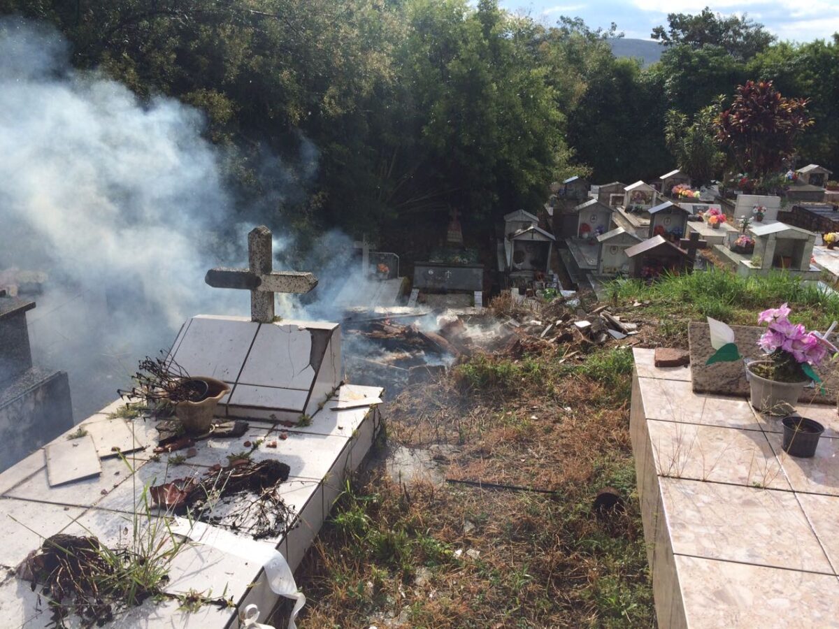 Ao chegarem nas dependências do cemitério encontraram caixões e lixo sendo incinerados ao ar livre, o que é crime, quando a queima a céu aberto não é autorizada pelo órgão ambiental competente