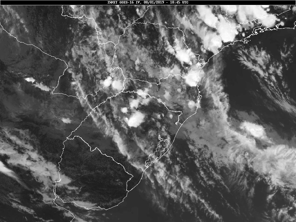 Riscos potenciais: INMET publica aviso iniciando em: 09/01/2019 10:00. Chuva entre 30 e 60 mm/h ou 50 e 100 mm/dia, ventos intensos (60-100 Km/h). Risco de corte de energia elétrica, queda de galhos de árvores, alagamentos e de descargas elétricas.