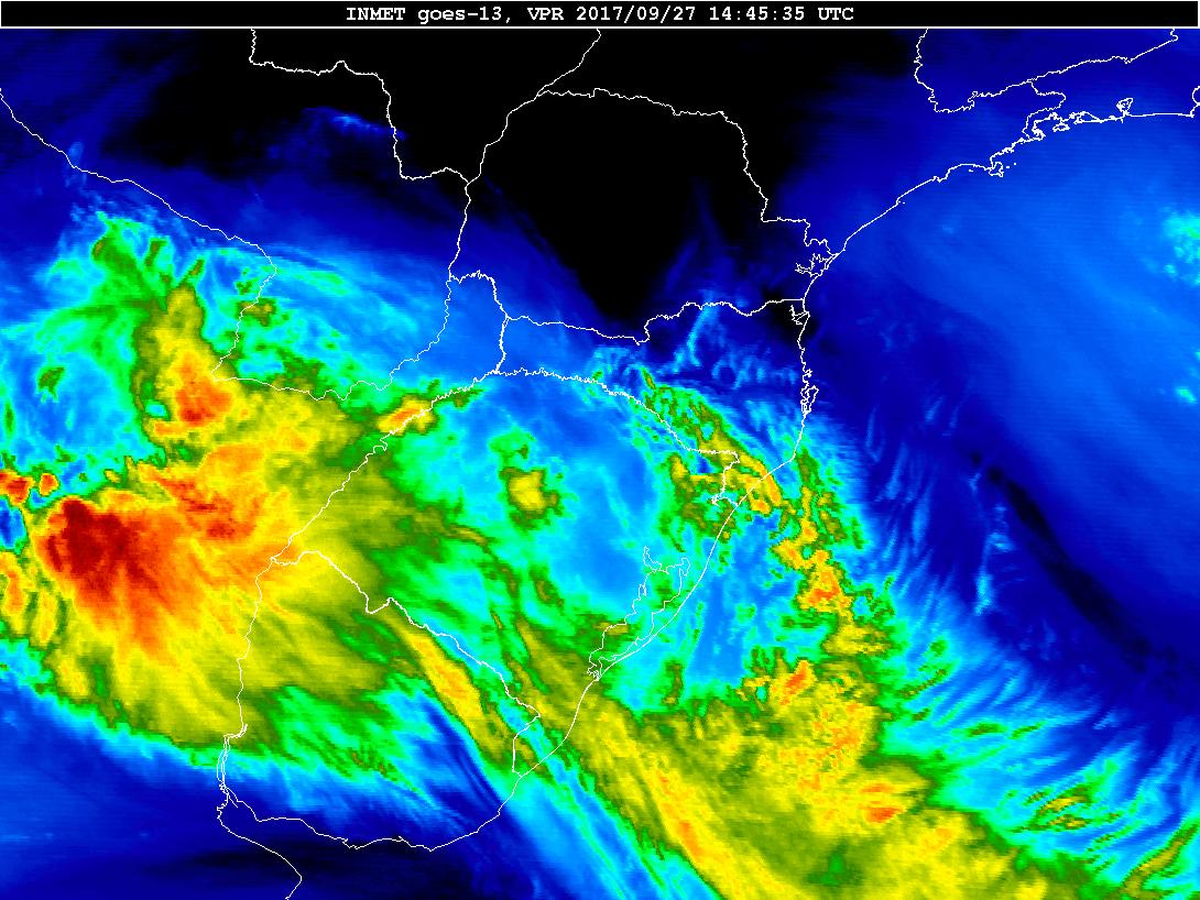 Riscos potenciais: Chuva entre 30 e 60 mm/h ou 50 e 100 mm/dia, ventos intensos (60-100 Km/h), e queda de granizo. Risco de corte de energia elétrica, estragos em plantações, queda de árvores e de alagamentos.