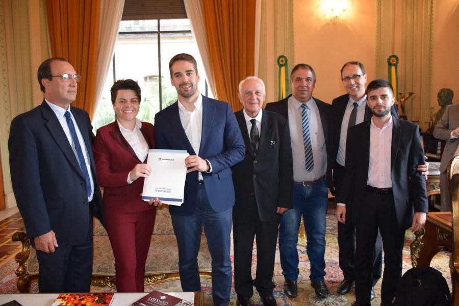 O prefeito em exercício de Osório, Eduardo Renda juntamente com o presidente da Câmara de Vereadores, Beto Gueiê, vereador Martim Tressoldi, vereador Roger Caputi e representantes da empresa Profine – fabricante de perfis de PVC, participou nesta tarde, (29/10), de uma Audiência com o governador do Estado, Eduardo Leite, no Palácio Piratini.