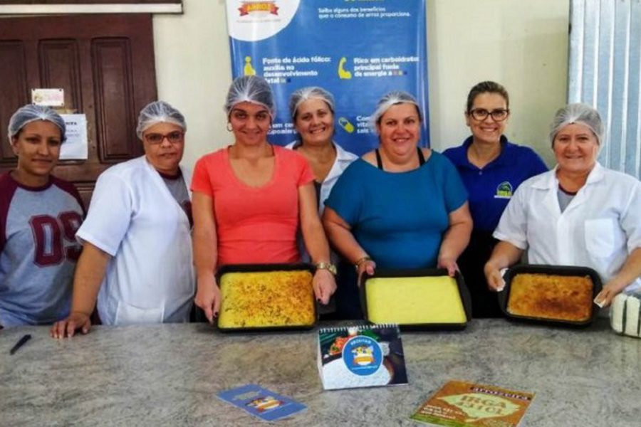 Na palestra que realiza, Carolina aborda as propriedades do arroz e derivados, a importância e vantagens do consumo regular do cereal na alimentação e esclarece dúvidas e mitos relacionados ao grão. Na oficina, ela apresenta três preparações com a farinha de arroz: torta salgada de legumes, bolo de laranja e bolo de banana. A ideia é que as receitas sejam inseridas no cardápio da escola.