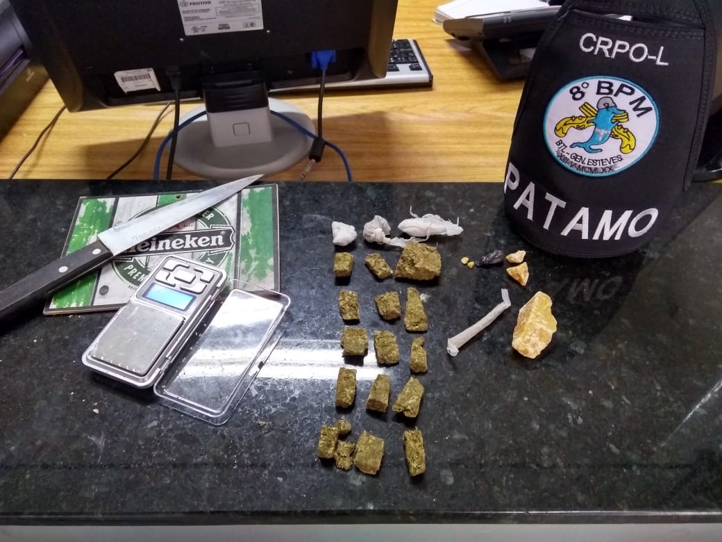 Foram encontradas 48 gramas de maconha fracionadas, 19,5 gramas de crack, e 0,4 gramas de cocaína.