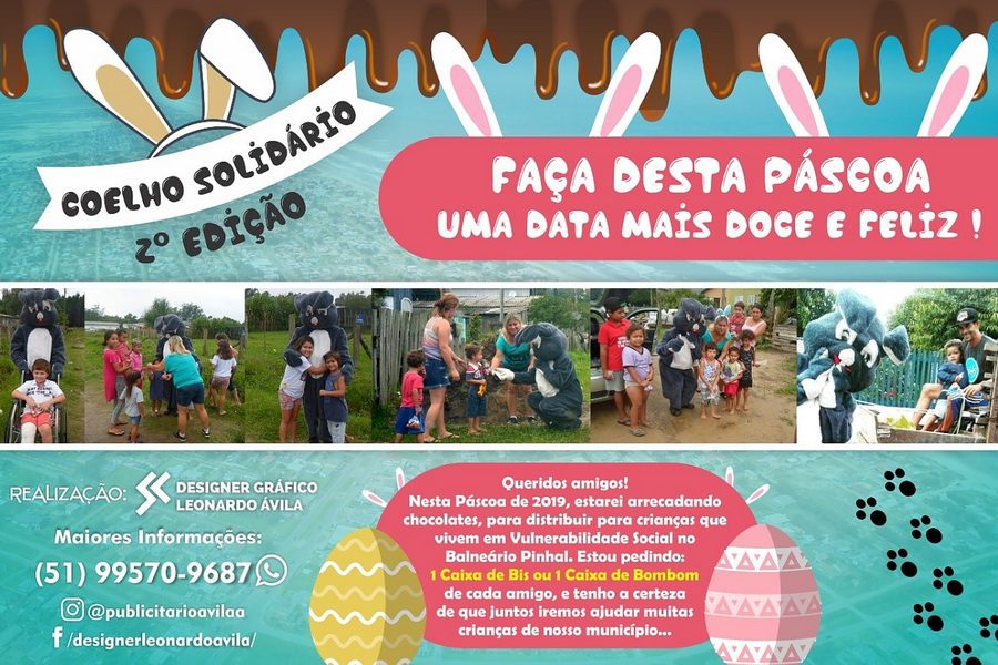 O jovem estudante de Publicidade e Propaganda, Leonardo Ávila, está realizando a segunda edição da campanha Coelho Solidário para distribuir kits com chocolates, pirulitos e balas para as crianças em vulnerabilidade social do município.