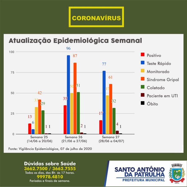 Em levantamento de dados realizado pela Vigilância Epidemiológica de Santo Antônio da Patrulha, relacionado à incidência de casos de síndrome gripal e confirmados de COVID-19, percebe-se que o Dia dos Namorados (12 de junho), aliado ao feriado de Corpus Christi, teve grande influência no aumento de casos.