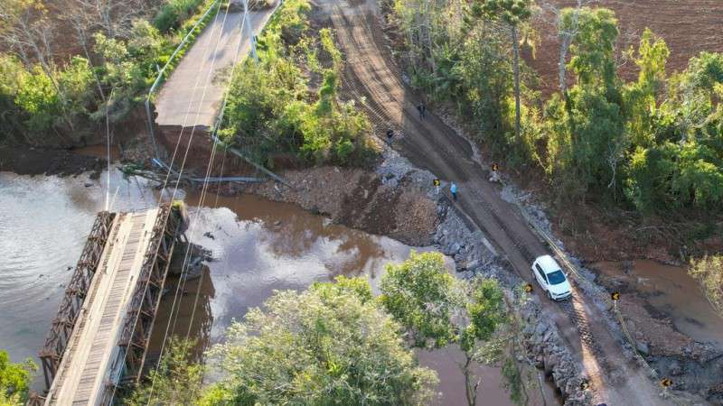 A obra serve de alternativa à ponte, na localidade de Morro Azul, que foi destruída pelo ciclone extratropical que passou pelo Estado, há 15 dias, causando a morte de 16 pessoas e deixando mais de 54 mil desabrigados no Rio Grande do Sul. Como a passagem é emergencial, apenas veículos de passeio e caminhões pequenos podem trafegar no trecho.