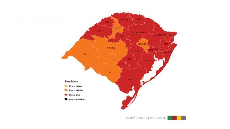 As regiões de Taquara, Santo Ângelo, Cruz Alta, Santa Rosa, Erechim, Passo Fundo, Caxias do Sul, Cachoeira do Sul e Santa Cruz do Sul evoluíram de bandeira laranja para vermelha nesta rodada.