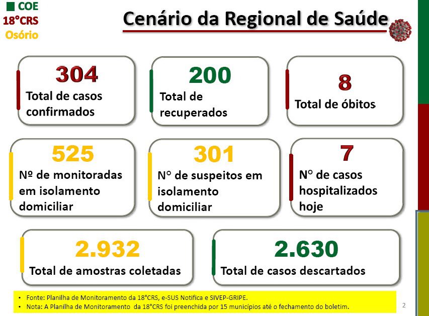 Torres, Osório, Arroio do Sal, Cidreira e Capão da Canoa tiveram um óbito pelo covid-19. Tramandaí, tem três mortes.