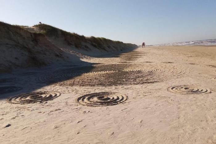 Sem marcas de pés ao redor, lado a lado, círculos perfeitos estavam desenhados no chão, numa área em direção à barra entre Tramandaí-Imbé. Um deles, o maior, tinha outros 16 ao seu redor.