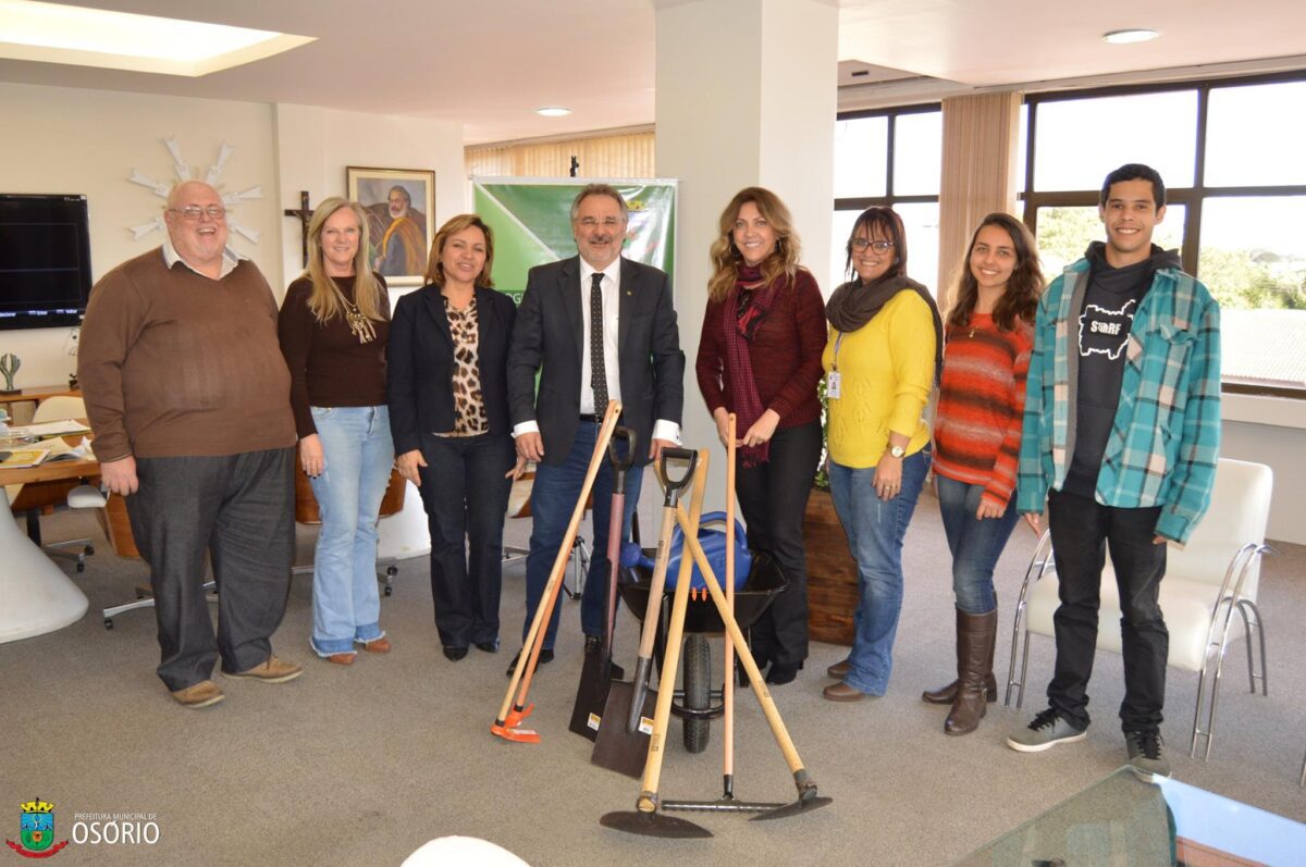 Na tarde desta quarta-feira (16/08) o Prefeito Eduardo Abrahão, juntamente com o Grupo Gestor do Programa Jogue Limpo com Osório fizeram a entrega de ferramentas (kit horta), que serão utilizadas no turno integral das escolas municipais. A ação do Programa será realizada em parceria com a Secretaria Municipal de Educação e Secretaria Municipal de Meio Ambiente, Agricultura e Pecuária e tem como objetivo oportunizar os alunos o contato com a terra, elaboração de hortas, assim como a montagem de composteiras, levando o aluno o gosto e cuidado com ambiente que estamos inseridos.