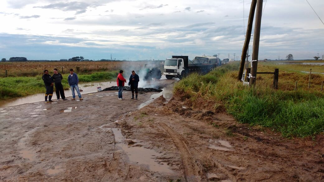 Manifestantes protestam desde o início da manhã desta quinta-feira (08), na entrada da estrada que dá acesso a Granja Vargas e também na RSC-101, em Palmares do Sul.