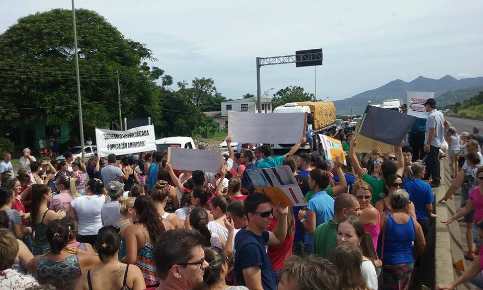 Manifestantes bloquearam na tarde quinta-feira (09), um trecho da BR-101, no km 25 em Três Cachoeiras.