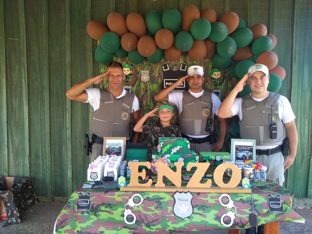 Ocorreu na tarde de domingo (08), em Osório, a festa de aniversário do menino Enzo, que completou sete anos e pediu que a decoração fosse inspirada na Brigada Militar, por ser um grande admirador da instituição.