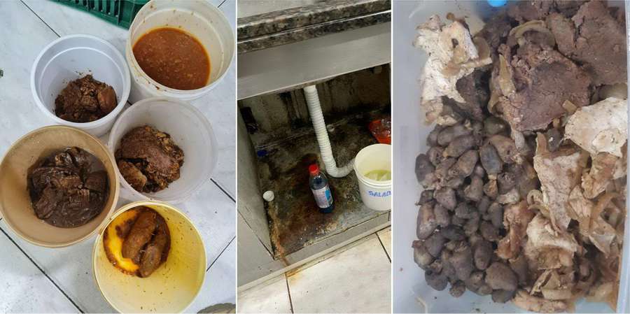 No total, foram apreendidos em torno de 700kg de alimentos impróprios para o consumo em quatro estabelecimentos.