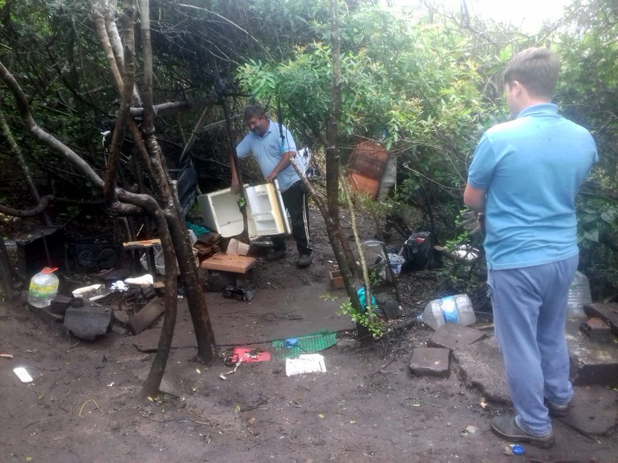 Na manhã da sexta-feira, 13 de outubro, a equipe da Secretaria Municipal de Meio Ambiente e Urbanismo realizou a limpeza da área invadida junto ao Morro do Farol. Seis funcionários e dois caminhões, coordenados pelo servidor George Rech, chegaram ao local, às 7h30min para desmanchar os barracos erguidos no local e remover todo o lixo acumulado.