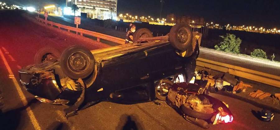 O condutor da motocicleta ultrapassou os cones e placas indicando o desvio de trânsito, invadiu o local do acidente e colidiu no veículo que se encontrava capotado com uma vítima fatal.