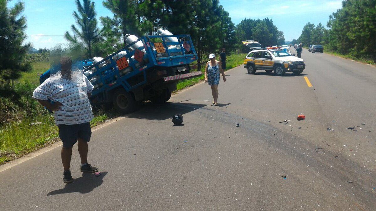 Um motociclista morreu após colisão envolvendo sua moto e um caminhão, na tarde deste sábado, no km 78 da ERS-389, a Estrada do Mar, em Torres. O caminhão transportava gás de cozinha.