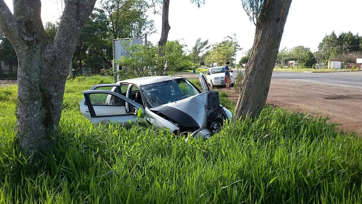 Ao ser atingido, o condutor perdeu o controle do Palio e acabou batendo em uma árvore.