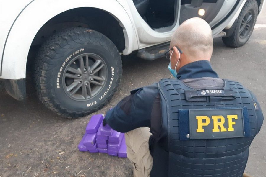 Ao vistoriarem o interior da caminhonete, os policiais localizaram 10,6 kg de maconha.