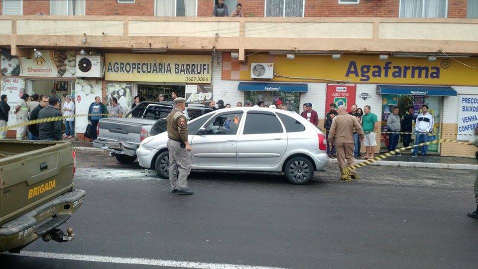 De acordo com informações da Brigada Militar, dois criminosos em uma motocicleta YBR de cor preta atiraram no homem que ainda conseguiu dirigir o carro por alguns metros, até bater em uma caminhonete estacionada.
