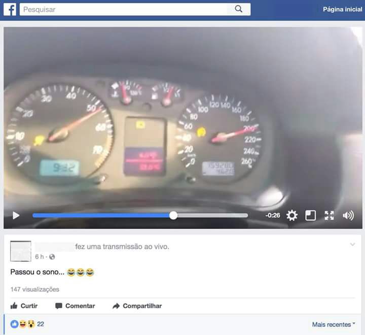 Os PRFs, então, passaram a acompanhar o veículo por meio de câmeras de video-monitoramento, constatando a situação. Passada meia hora do acontecimento, uma denúncia oriunda de uma rede social mantida pela PRF apontava a página pessoal do motorista com o vídeo gravado de dentro do carro, pelo próprio condutor enquanto ele dirigia. A pagina apontava que o homem havia feito uma transmissão ao vivo do ato irresponsável.