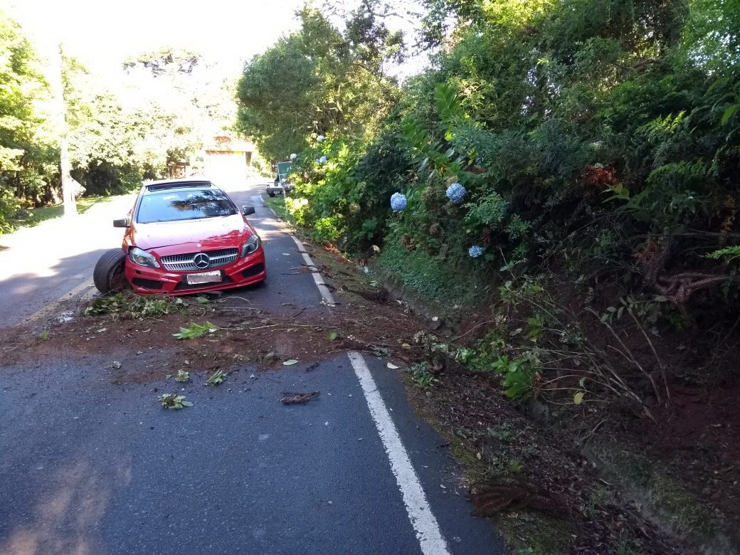 O motorista de uma Mercedes A 250 Turbo Sport sofreu um acidente de trânsito, na manhã deste sábado (13), no Morro da Borússia, em Osório.