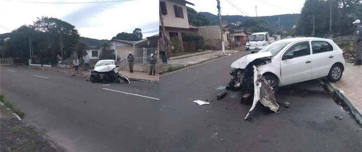 Dois veículos se envolveram em um acidente e quase invadiram uma residência, na manhã desta segunda-feira (28), em Osório.
