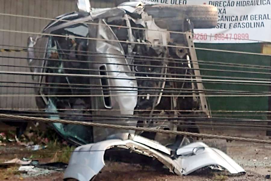 Ao capotar, a Hilux atingiu postes de energia elétrica, deixando vários consumidores sem luz.