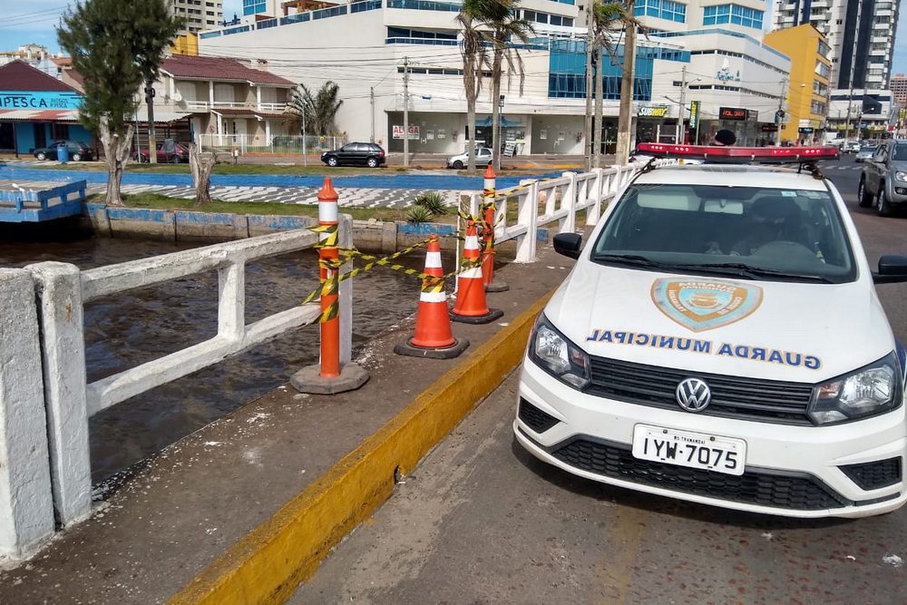 A Prefeitura de Tramandaí, por meio da Guarda Municipal, isolou o trecho da ponte Giuseppe Garibaldi, que teve parte do muro de contenção danificado nesta quinta-feira (04/06).