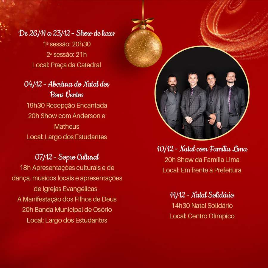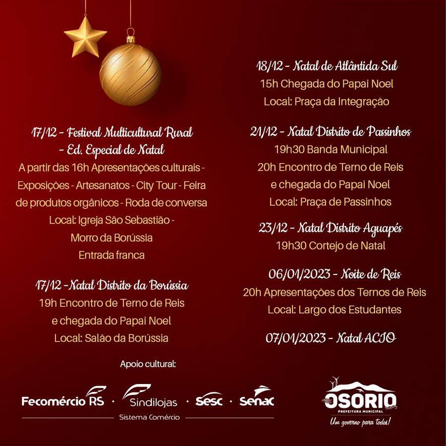 A administração municipal de Osório preparou uma programação especial para a edição deste ano do Natal dos Bons Ventos.