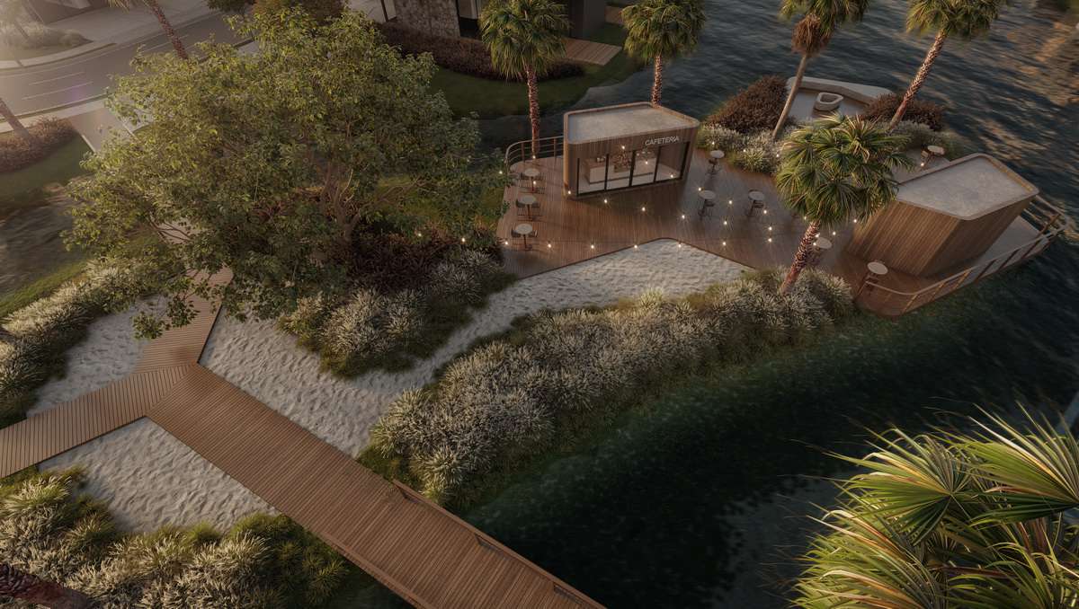 O projeto inclui três lagos artificiais, totalizando um hectare de espelho d’água, e uma praia artificial com areias brancas, inspirada no renomado Condomínio Murano.