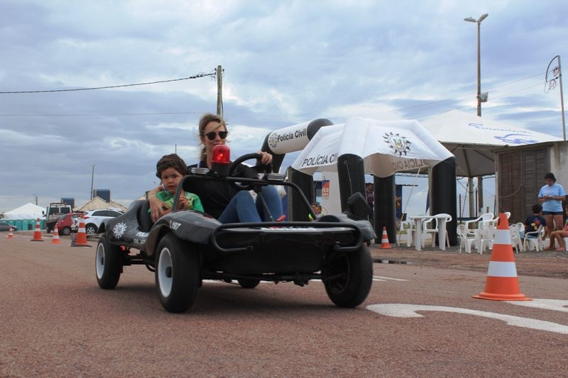 Dezenas de crianças receberam dicas e orientações sobre educação e segurança no trânsito. Após receberem as explicações, os pequenos tiveram a oportunidade de andar nas miniviaturas da Polícia Civil. Os pais aproveitaram para tirar fotos dos filhos nos minibuggys preto e branco da instituição.