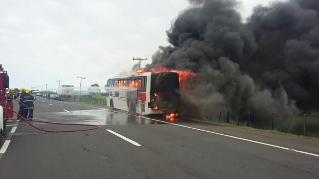 Ônibus da Unesul pega fogo na BR-101