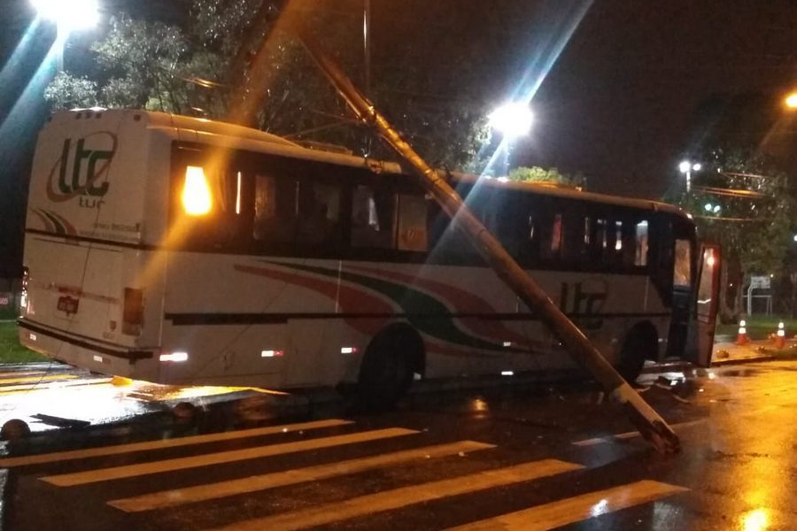 O motorista de um ônibus perdeu o controle do veículo, invadiu a ciclovia e colidiu em um poste na Avenida Marcílio Dias, no bairro Primavera, em Osório.