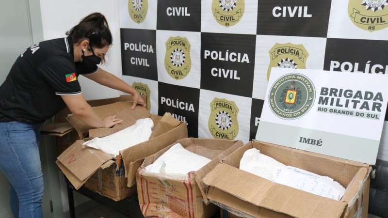 A Polícia Civil, em conjunto com a Brigada Militar, apreendeu 107,9kg de matéria-prima destinada à preparação de cocaína em Imbé.