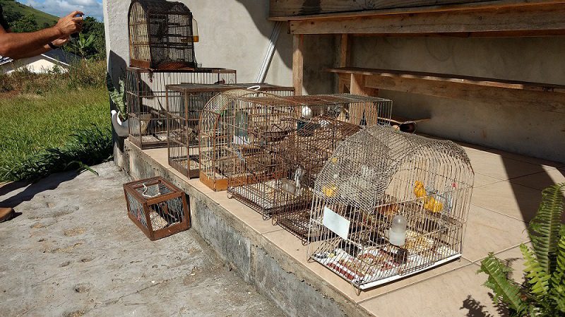 Foram encontrados 11 pássaros não anilhados, dentre eles canário-da-terra, coleirinho, azulão, trinca-ferro e cardeal. A apreensão resultou em multas de R$ 10 mil aos infratores.