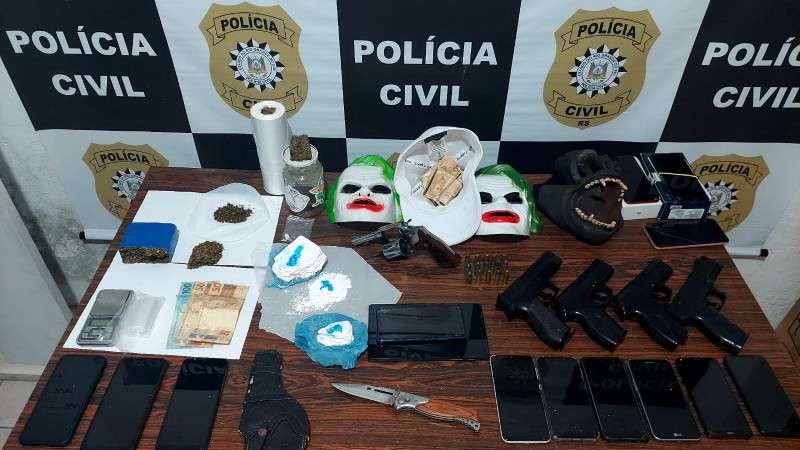 Foram apreendidas porções de maconha, cocaína, arma de fogo, munições de diversos calibres, além de uma quantia em dinheiro, balança de precisão, material para embalar droga e aparelhos celulares.