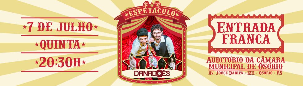 Os Danadões gravarão no dia 07 de Julho, quinta-feira, o seu primeiro DVD. A gravação será realizada no Auditório da Câmara Municipal de Osório, às 20h30min, com a entrada franca….