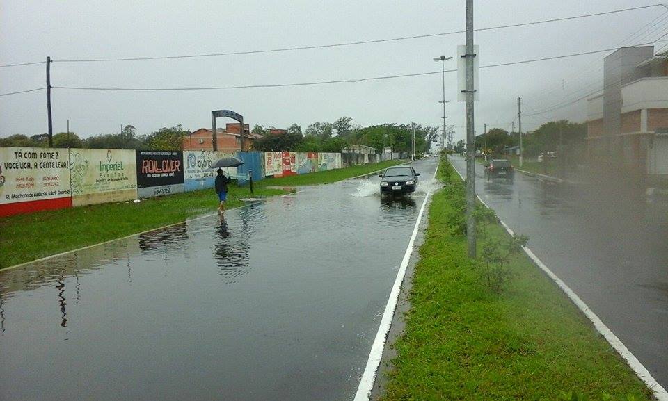 Isto porque a Rua Santos Dumont, bem em frente ao Clube de Futebol Gepol, está tomada pela água.