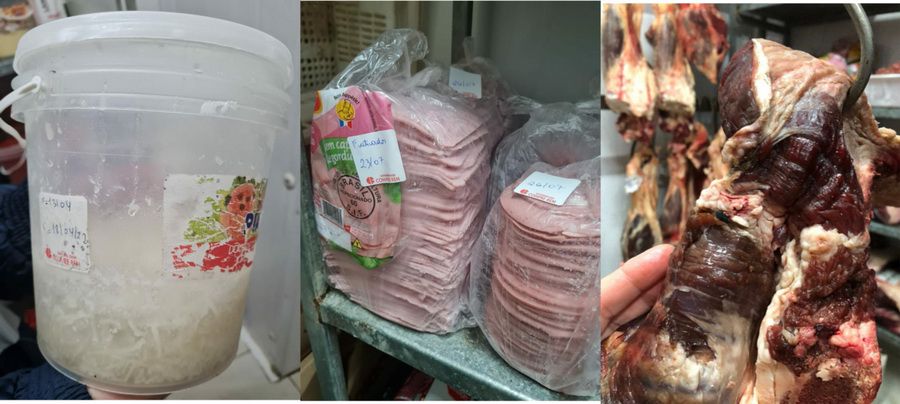 No total, 750 kg de alimentos impróprios para consumo foram apreendidos e inutilizados. Os estabelecimentos foram autuados.