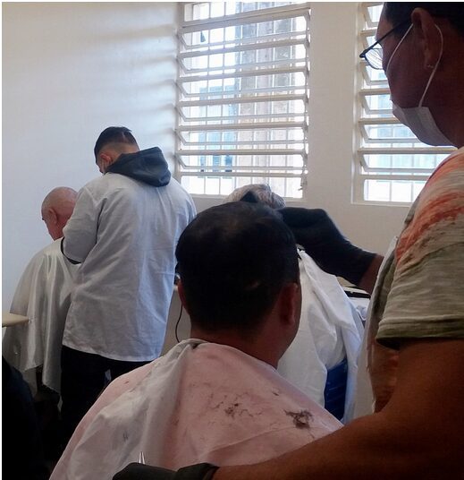 Na ocasião, os alunos do curso de Barbeiro estiveram na penitenciária, acompanhados de seu professor, e realizaram os cortes de cabelo, barba e sobrancelhas em cerca de 20 detentos.