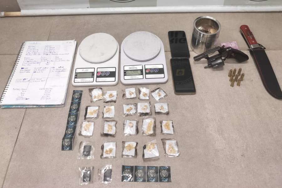 O outro indivíduo tentou fugir adentrando um pátio, sendo alcançado e localizados quatro pedras de crack, três munições calibre .38, R$ 41, uma balança de precisão e um caderno com anotações do tráfico.